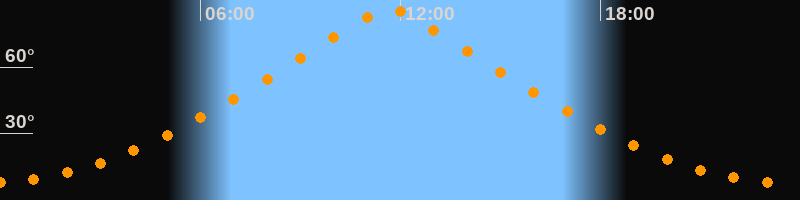 | Höchster Stand (Kulmination) | 11:39 Uhr (h = 86,5°) |