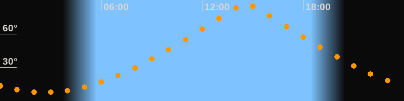 | Höchster Stand (Kulmination) | 14:36 Uhr (h = 86,5°) |