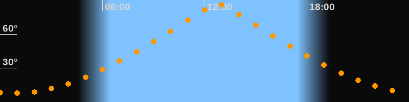 | Höchster Stand (Kulmination) | 12:46 Uhr (h = 86,5°) |