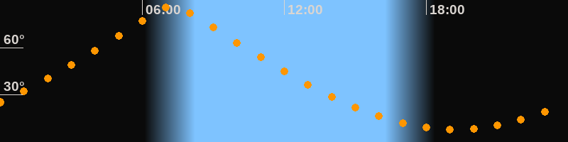 | Höchster Stand (Kulmination) | 07:16 Uhr (h = 86,5°) |