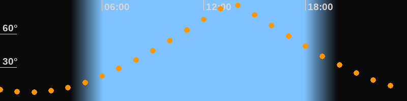| Höchster Stand (Kulmination) | 13:42 Uhr (h = 86,5°) |