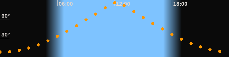| Höchster Stand (Kulmination) | 12:12 Uhr (h = 86,5°) |