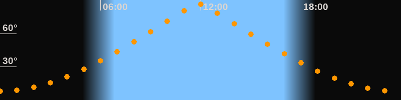 | Höchster Stand (Kulmination) | 11:52 Uhr (h = 86,5°) |