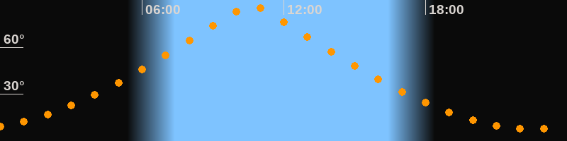 | Höchster Stand (Kulmination) | 10:37 Uhr (h = 86,5°) |