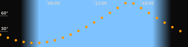 | Höchster Stand (Kulmination) | 16:28 Uhr (h = 86,5°) |