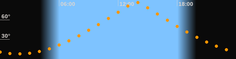 | Höchster Stand (Kulmination) | 13:51 Uhr (h = 86,5°) |