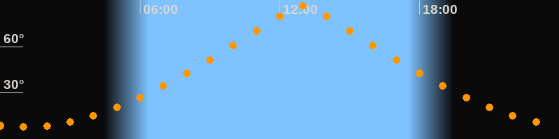 | Höchster Stand (Kulmination) | 13:00 Uhr (h = 86,5°) |