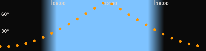 | Höchster Stand (Kulmination) | 12:24 Uhr (h = 86,5°) |