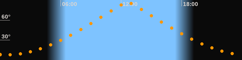 | Höchster Stand (Kulmination) | 12:37 Uhr (h = 86,5°) |