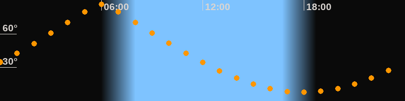 | Höchster Stand (Kulmination) | 06:00 Uhr (h = 86,5°) |