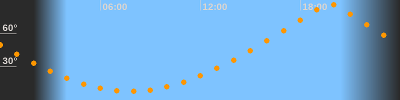 | Höchster Stand (Kulmination) | 19:47 Uhr (h = 86,5°) |