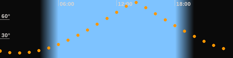 | Höchster Stand (Kulmination) | 13:53 Uhr (h = 86,5°) |