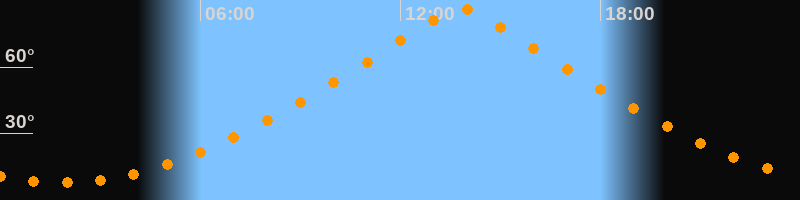 | Höchster Stand (Kulmination) | 13:49 Uhr (h = 86,5°) |