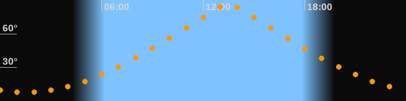 | Höchster Stand (Kulmination) | 13:29 Uhr (h = 86,5°) |