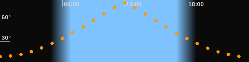 | Höchster Stand (Kulmination) | 11:58 Uhr (h = 86,5°) |