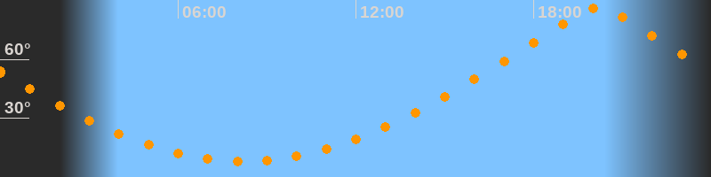 | Höchster Stand (Kulmination) | 20:11 Uhr (h = 86,5°) |
