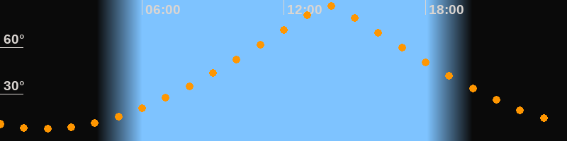 | Höchster Stand (Kulmination) | 13:54 Uhr (h = 86,5°) |