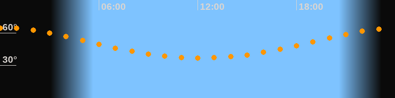 Höchster Stand (Kulmination)00:08 Uhr (h = 64,6°)
