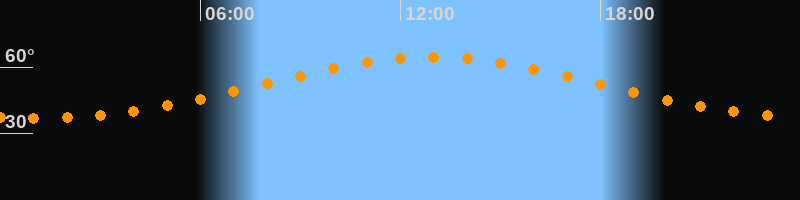 Höchster Stand (Kulmination)12:56 Uhr (h = 64,6°)