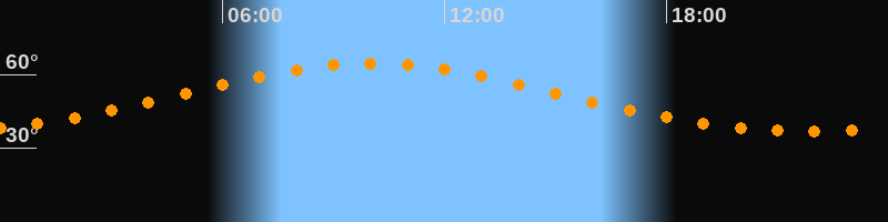 Höchster Stand (Kulmination)10:02 Uhr (h = 64,6°)
