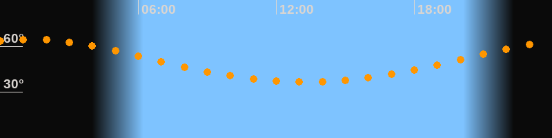 Höchster Stand (Kulmination)01:16 Uhr (h = 64,6°)
