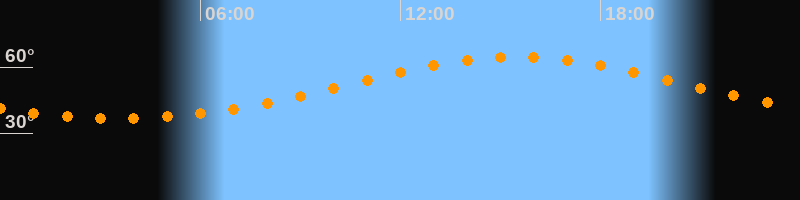 Höchster Stand (Kulmination)15:32 Uhr (h = 64,6°)