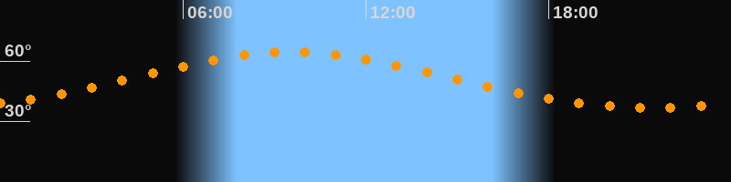 Höchster Stand (Kulmination)09:33 Uhr (h = 64,6°)