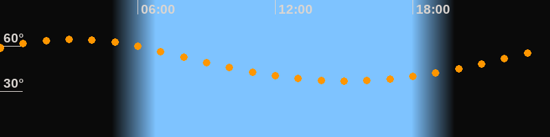 Höchster Stand (Kulmination)03:10 Uhr (h = 64,6°)