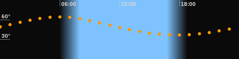 Höchster Stand (Kulmination)05:52 Uhr (h = 64,6°)