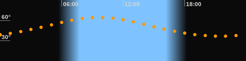 Höchster Stand (Kulmination)09:37 Uhr (h = 64,6°)