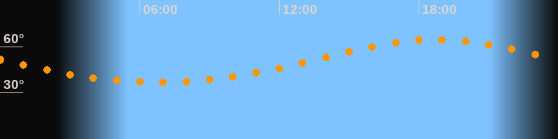 Höchster Stand (Kulmination)18:46 Uhr (h = 64,6°)