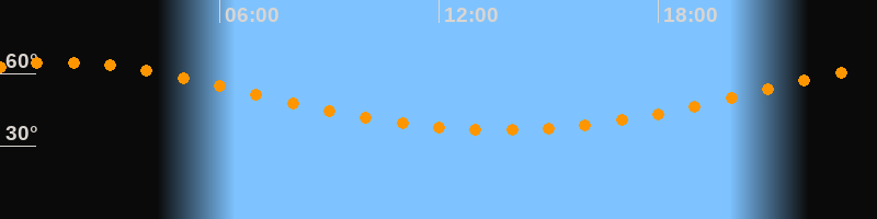 Höchster Stand (Kulmination)01:39 Uhr (h = 64,6°)