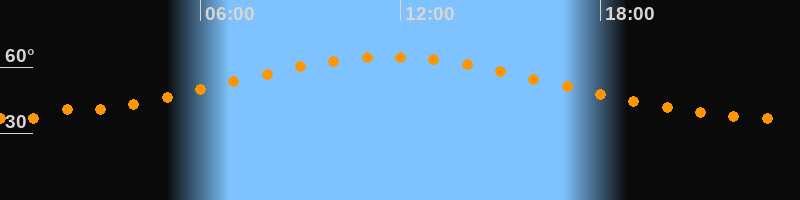 Höchster Stand (Kulmination)11:40 Uhr (h = 64,6°)