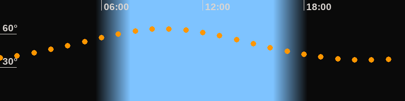 Höchster Stand (Kulmination)09:43 Uhr (h = 64,6°)