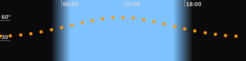 Höchster Stand (Kulmination)11:42 Uhr (h = 64,6°)