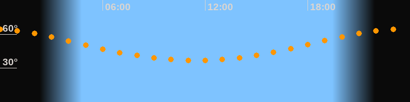 Höchster Stand (Kulmination)23:25 Uhr (h = 64,6°)