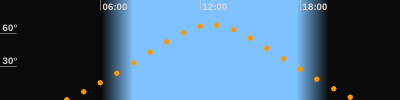 | Höchster Stand (Kulmination) | 12:40 Uhr (h = 67,8°) |
