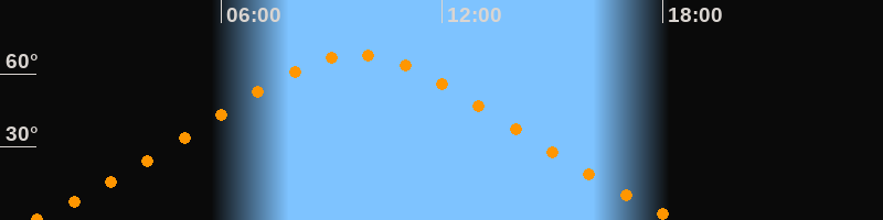 | Höchster Stand (Kulmination) | 09:40 Uhr (h = 67,8°) |