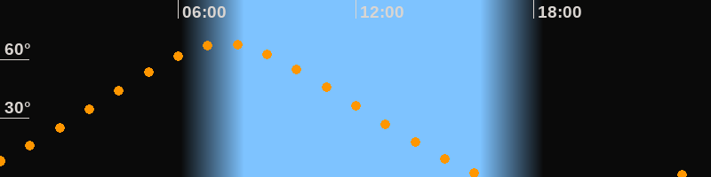 | Höchster Stand (Kulmination) | 07:35 Uhr (h = 67,8°) |