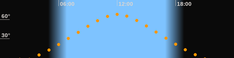 | Höchster Stand (Kulmination) | 12:01 Uhr (h = 67,8°) |