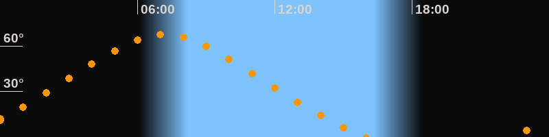 | Höchster Stand (Kulmination) | 07:10 Uhr (h = 67,8°) |