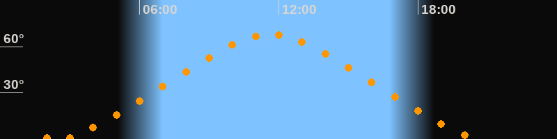| Höchster Stand (Kulmination) | 11:38 Uhr (h = 67,8°) |