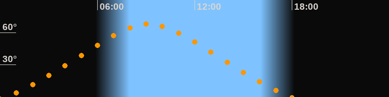 | Höchster Stand (Kulmination) | 09:09 Uhr (h = 67,8°) |