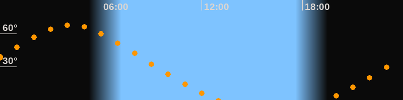 | Höchster Stand (Kulmination) | 04:11 Uhr (h = 67,8°) |