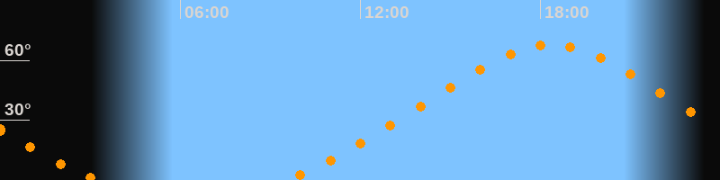 | Höchster Stand (Kulmination) | 18:21 Uhr (h = 67,8°) |