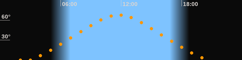 | Höchster Stand (Kulmination) | 11:45 Uhr (h = 67,8°) |