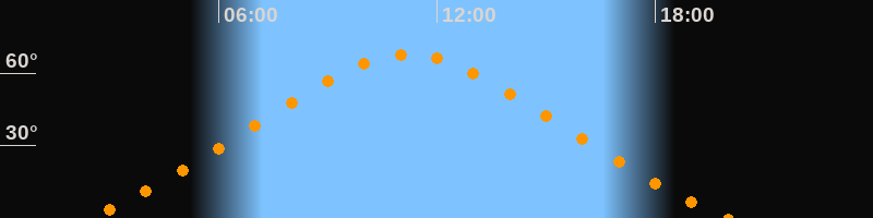 | Höchster Stand (Kulmination) | 11:11 Uhr (h = 67,8°) |