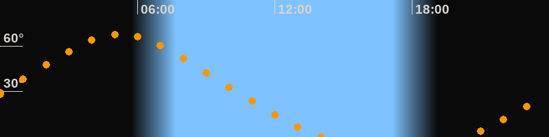 | Höchster Stand (Kulmination) | 05:14 Uhr (h = 67,8°) |