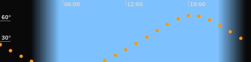 | Höchster Stand (Kulmination) | 18:23 Uhr (h = 67,8°) |