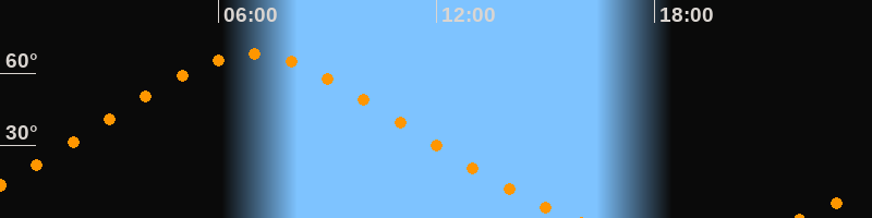 | Höchster Stand (Kulmination) | 06:55 Uhr (h = 67,8°) |
